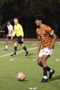 The Warriors began on defense, but after a slow push from the Rangers, they took possession of the ball. After a few excellent passes between players, they nearly scored and the Defense barely edged out the Warriors’ strikers. The game continued with neither team holding onto the ball for long, causing a lot of back and forth gameplay on the field. Almost midway through the half, a penalty kick resulted in Vista’s first point of the night. Warrior goalkeeper Zach Shaddock ‘25 was kept busy with multiple attempted shots from the Rangers, soon leading to Vista’s second goal, ending the first half 2-0.